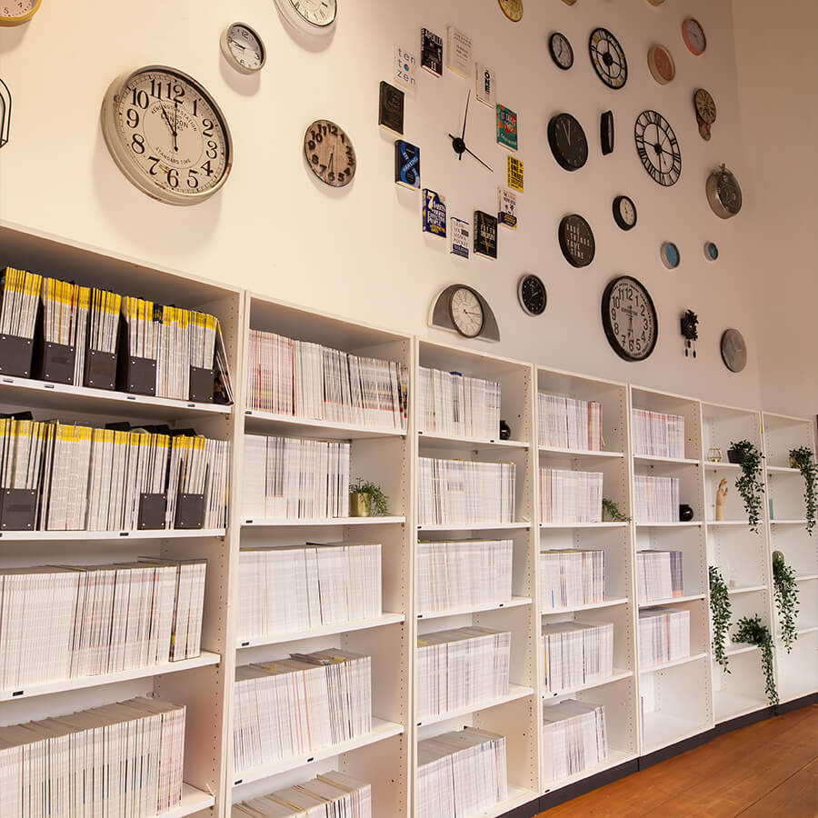 Inmitten dieser stillstehenden Zeiten gibt es auch eine funktionierende Uhr, die die aktuelle Zeit anzeigt: eine Bücheruhr mit einem Ziffernblatt, das nicht aus Zahlen, sondern auch Buchcovern besteht. Die Titel versammeln Tipps, wie man zur Ruhe kommt und sich fokussiert, wie man gut zusammenarbeitet, Prozesse optimiert oder die Dynamik in Organisationen verändert, wie man die Firmenkultur weiterentwickelt oder sich auf künstliche Intelligenz vorbereitet. Und nicht zuletzt: wie man Ideen und Visionen entwickelt.
