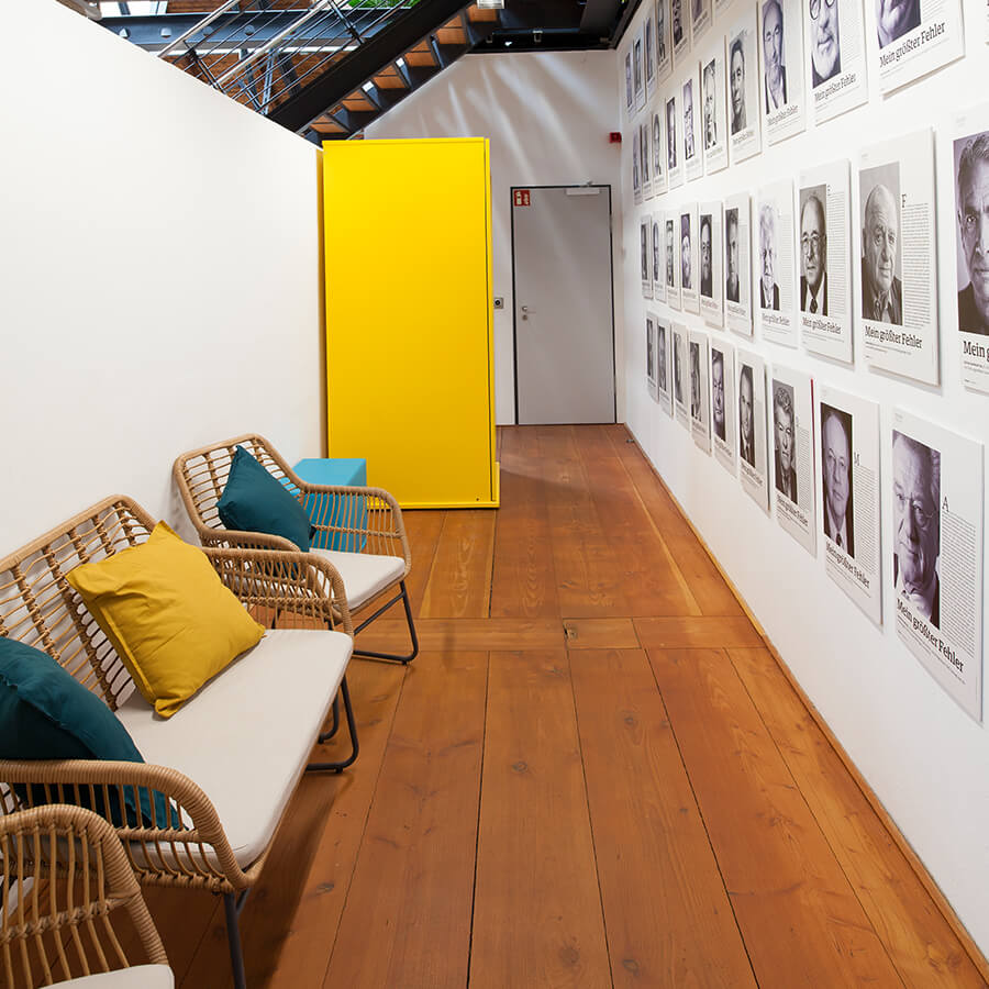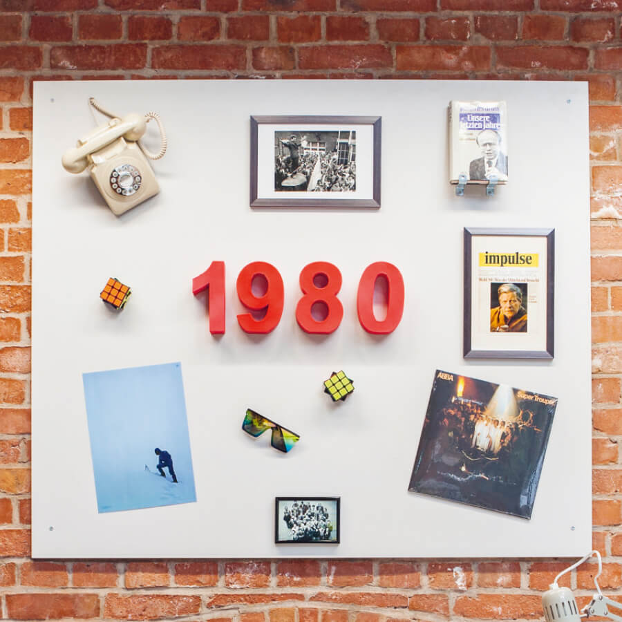 Jede Marke kennt – neben dem Gründungsjahr – prägende Wegmarken. Dies gilt auch für impulse. Gegründet im Jahr 1980 wurde impulse 2013 im Zuge eines Management-Buy-outs aus dem Konzern Gruner+Jahr herausgelöst. Mit einem Mal war impulse ein inhabergeführter Mittelständler – und damit auf Augenhöhe mit tausenden kleinen und mittelständischen Unternehmerinnen und Unternehmern. Im Corona-Jahr 2020 entwarf das Team eine Unternehmensvision für das Jahr 2025, als Leitplanken für sämtliche strategischen Entscheidungen. Diese drei wichtigen Jahre – 1980, 2013 und 2025 – haben wir in der „Komfortzone“ visualisiert. An den Wänden zeigen wir zudem sämtliche impulse-Cover von 1980 bis 2022.