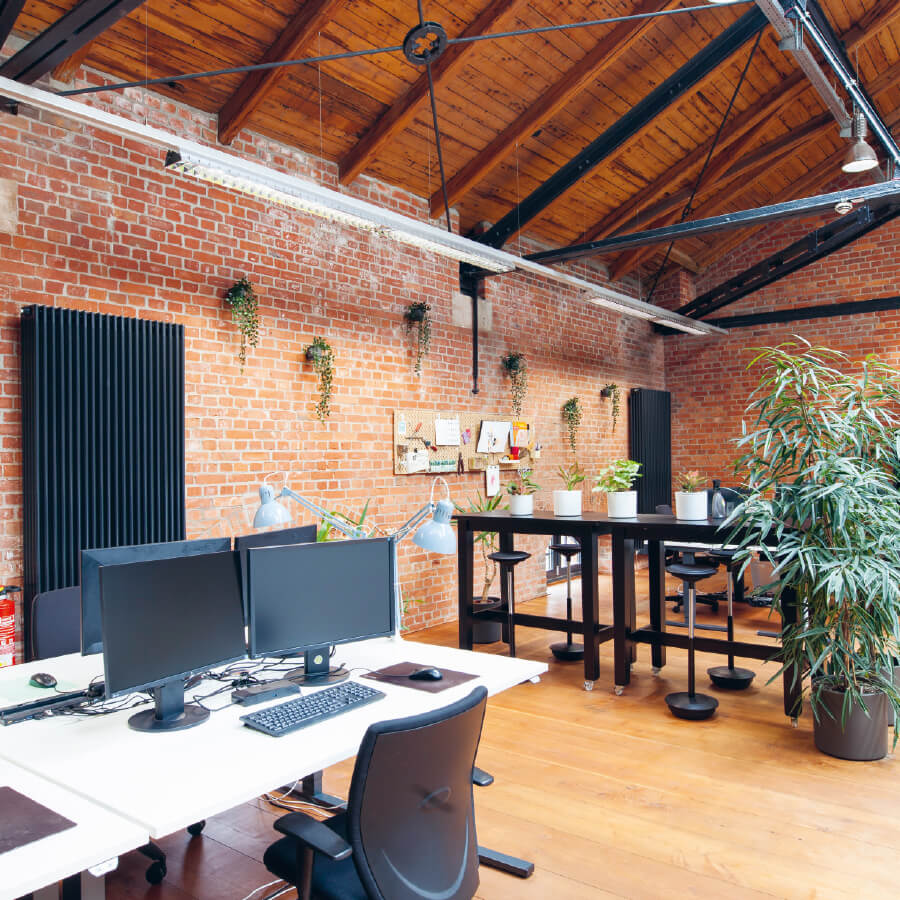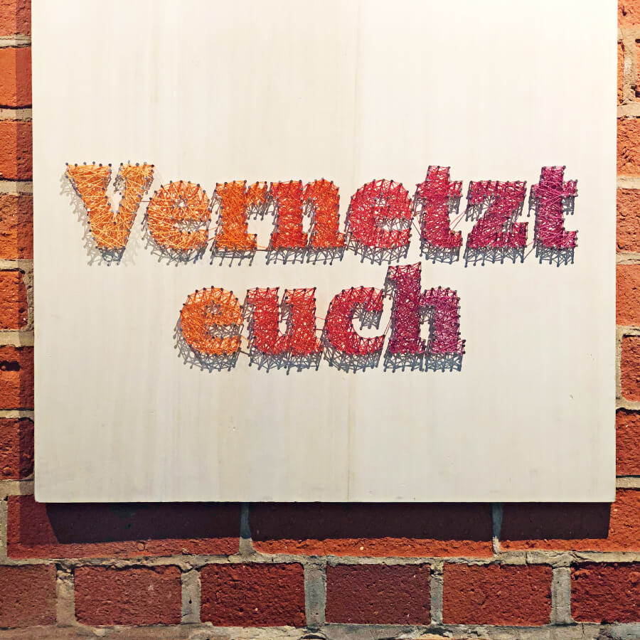 Etwa die Hälfte der Arbeitsplätze im MachWerk besteht aus klassischen höhenverstellbaren Schreibtischen, die andere aus Sofas, Stühlen, Hockern, Bänken oder – wie in der Arena – aus Hängesesseln. Entschieden haben wir uns für Hängesessel aus recyceltem Material, die unter fairen Bedingungen per Handarbeit in Mexiko hergestellt werden.