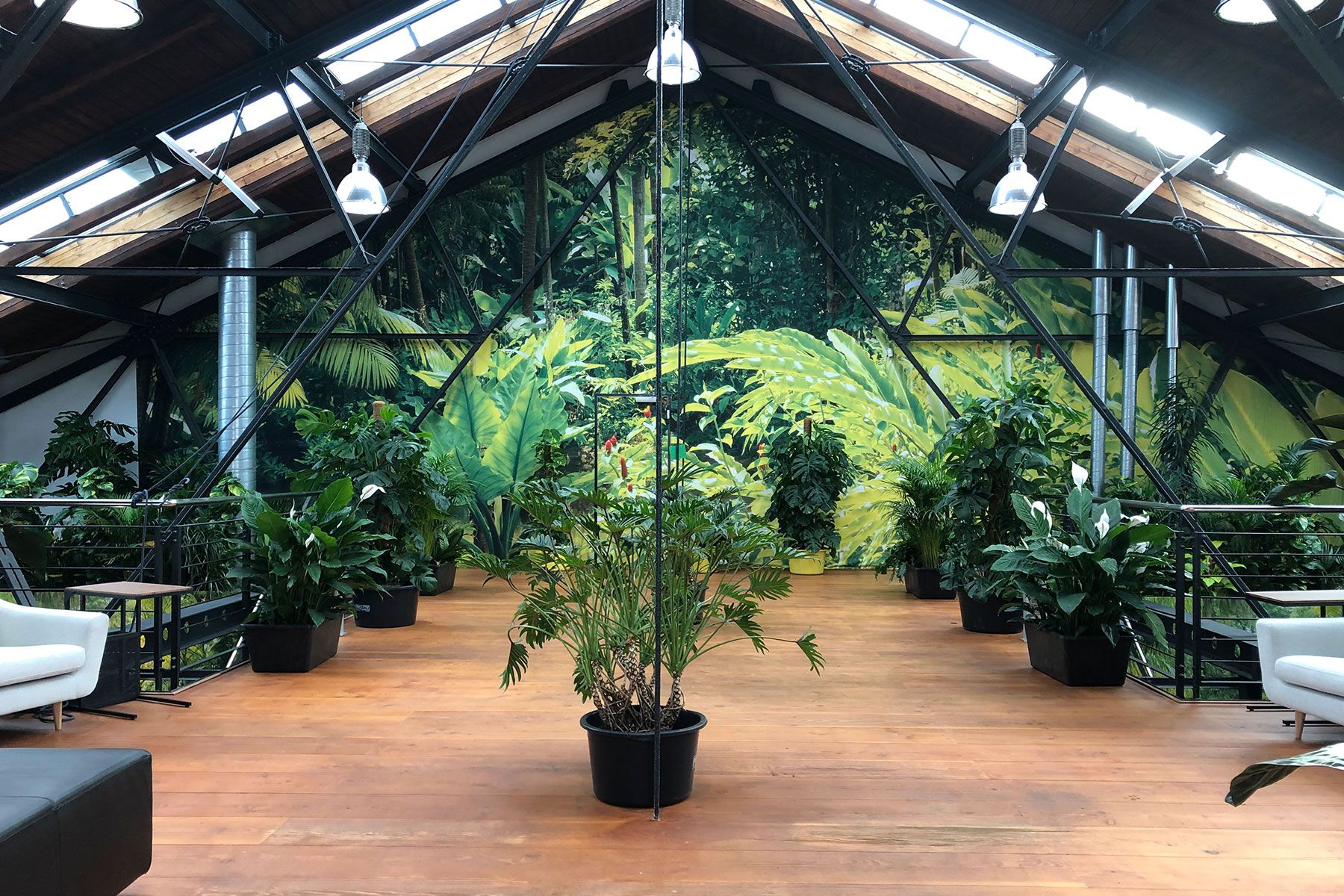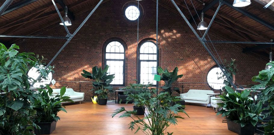 Es ist der höchste Raum des MachWerks direkt unter dem Himmel: Er besticht durch seinen spitz zulaufenden Backsteingiebel, die Atmosphäre des Dschungels, der den Raum einrahmt, und die Offenheit der Architektur: Direkt unter den Dachfenstern bietet die Galerie selbst bei schlechtem Wetter viel Licht. Ausgestattet mit modernster Konferenztechnik lassen sich von dort Events per Video übertragen – in die anderen Etagen des MachWerks oder nach außen. Ausgestattet mit Sofas und flexiblem Mobiliar kann man ihn auch als Plenum für größere Gruppen nutzen.