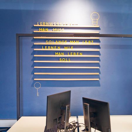 In der Lernwernstatt prangt ein Zitat an der Wand: „Man muss, solange man lebt, lernen, wie man leben soll.“ Dieser Satz, der dem römischen Philosophen Seneca (1 – 65 n. Chr.) zugesprochen wird, zielt auf einen Wert, der auch für Unternehmer von Bedeutung ist: die Lust, sich ständig weiterzuentwickeln. Dahinter steckt die Erkenntnis, dass man es sich schlicht nicht leisten kann, beim Status quo zu verharren. Märkte verändern sich schnell – und zwingen einen dazu, sich nicht nur anzupassen, sondern zu versuchen, immer wieder einen Schritt voraus zu sein. Und auch die eigene Firmenkultur entwickelt sich stets weiter.